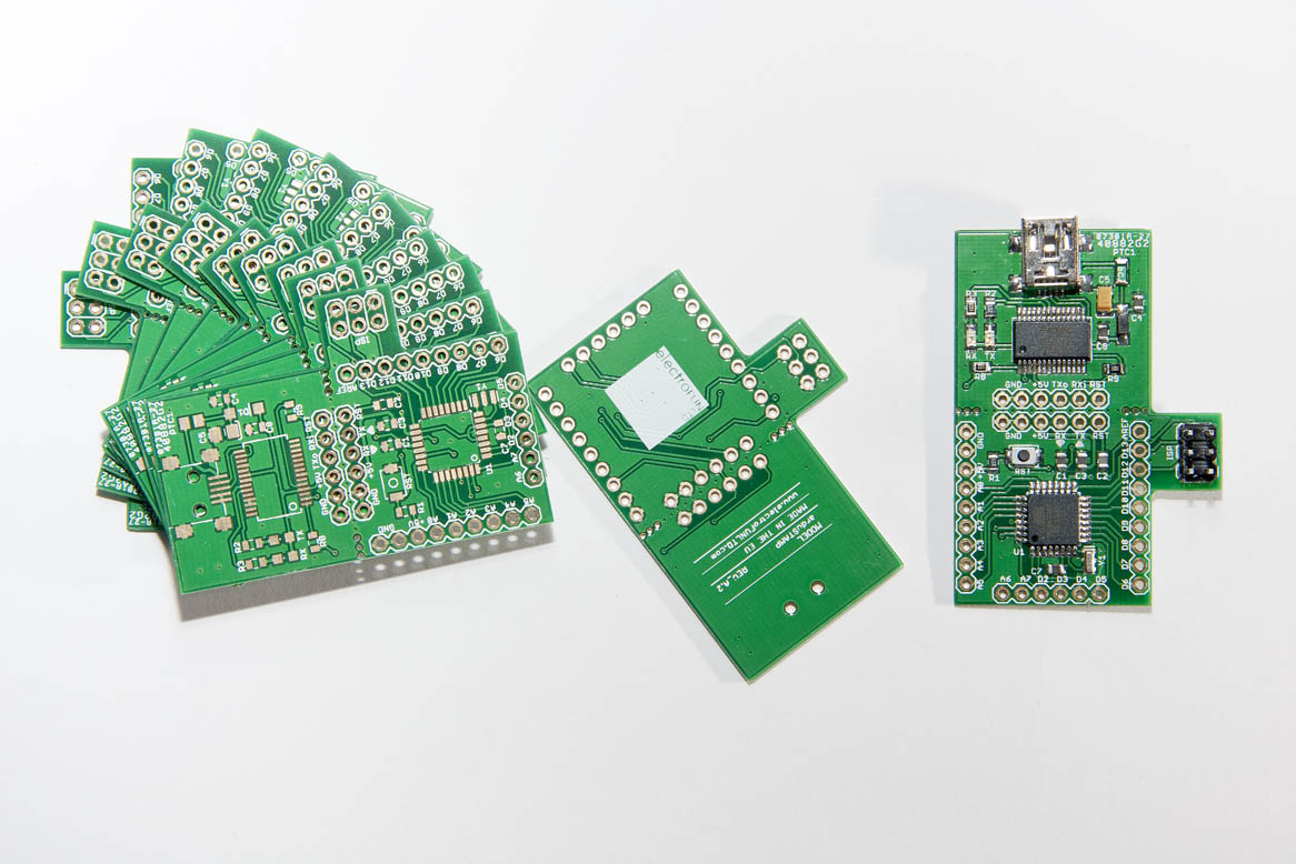 The arduSTICK is electroFUN's approach to have a cost effective and versatile development board. It is a drop in replacement of the Arduino Nano but without the need to have a permanent USB to serial interface on the board. It is ideal for prototyping, breadboarding, integrating in your final assembly.